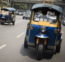 Verder kan je ook gebruik maken van taxi’s die doorheen de hele stad te vinden zijn. Let er wel op dat zich een officieel taxiteken bovenaan de wagen bevindt en dat de chauffeur de meter aanzet bij vertrek. Uiteraard kan je bij een bezoek aan Bangkok niet rond de tuk-tuks heen, typisch voor het Thaise straatbeeld. Deze driewielige gemotoriseerde taxifietsen zijn heel populair voor korte ritjes doorheen de stad. Voor een appel en een ei brengt de chauffeur je vlot ter plaatse. Maar spreek vooraf wel een prijs af en durf hierbij je onderhandelingscapaciteiten te gebruiken. Tijdens de rit hoef je ook niet terug te schrikken voor hun soms roekeloze rijgedrag, het maakt nu eenmaal deel uit van het avontuur en de chauffeur weet waar hij mee bezig is.