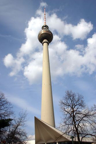 Hier zie je de Fernsehturm in zijn geheel. Het gebouw dateert uit 1969.