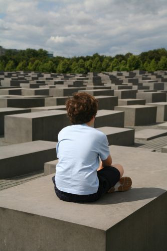 Dit veld met betonblokken is een gedenkteken voor de Holocaust.