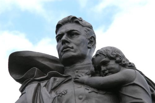 Dit standbeeld bevindt zich in het Treptower Park. Het is een soldaat met een kind.