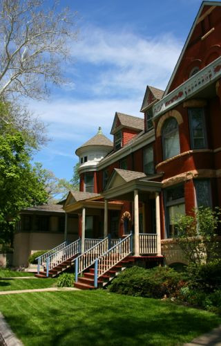 Deze huizen en tuinen liggen in Oak Park in Chicago. Frank Lloyd Wright leefde en werkte ook in deze buurt.