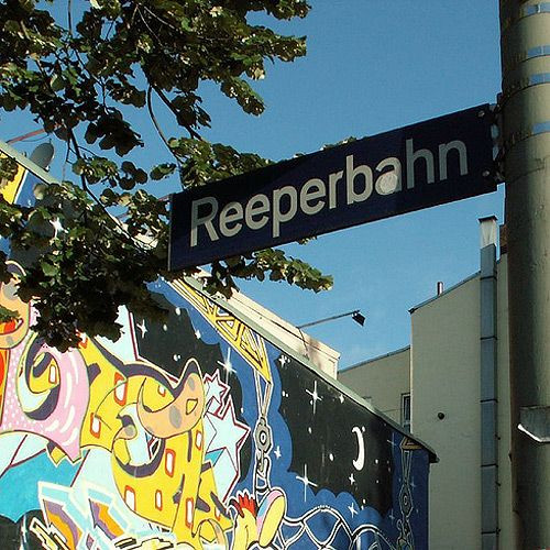 Zoals je kan zien, is deze foto aan de Reeperbahn van Hamburg. Hier vind je veel uitgaansmogelijkheden.