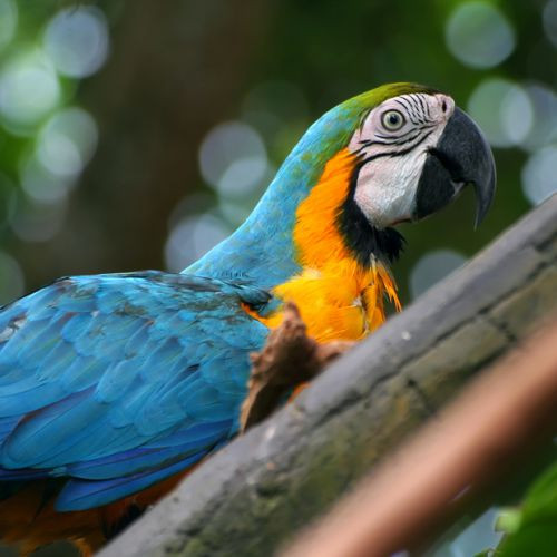 Deze papegaai is een inwoner van het Parrot Jungle Island op Watson Island bij Miami.