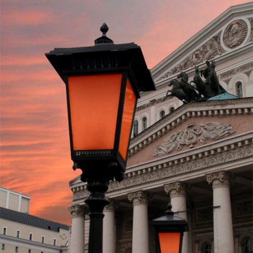 Je ziet hier een beeld van aan het Bolsjojtheater in Moskou. Dit tweede gebouw staat er sinds 1825.
