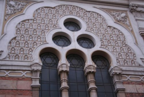 Deze glasramen hebben de vormen van Davidssterren erin verwerkt. Je kan dus uit deze foto al opmaken dat dit gebouw een synagoge is.
