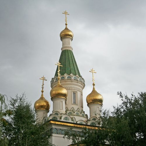 Deze kerk is gebouwd aan het begin van de 20ste eeuw. Je herkent aan de stijl dat ze door Russen gebouwd werd.