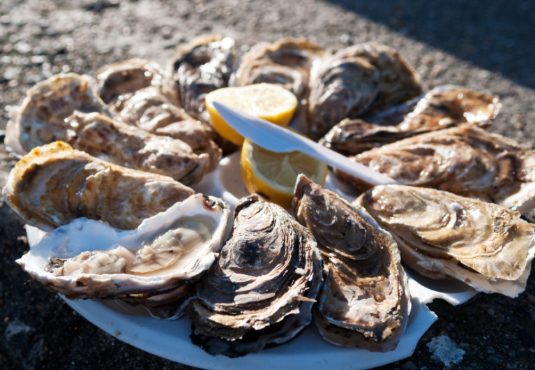 Het kuststadje Cancale is de thuishaven van een reeks oesterkwekerijen. Vanop de pier van de haven heb je uitzicht op de oesterbanken in zee en kan je je alvast verheugen op de heerlijke oesters die je later zal proeven aan een kraampje op de dijk.